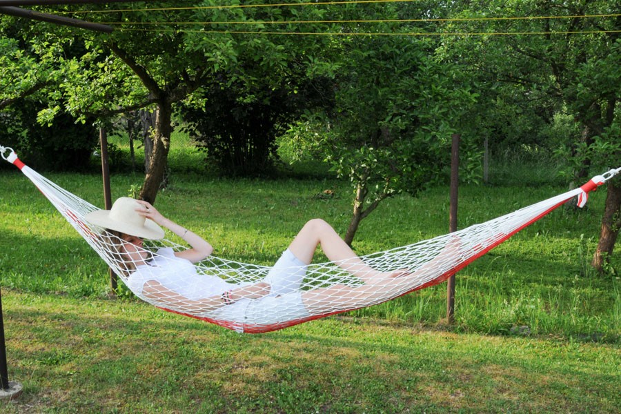 Sítě jsou vyrobeny z uzlové síťoviny, která je nesrovnatelně pevnější a při odpočinku Vás ještě budou jemně masírovat uzly - fyzioterapeutické účinky - ověřeno! Materiál : polypropylen o síle 3mm, velikost ok 5cm. Barva : dvoubarevné provedení.
